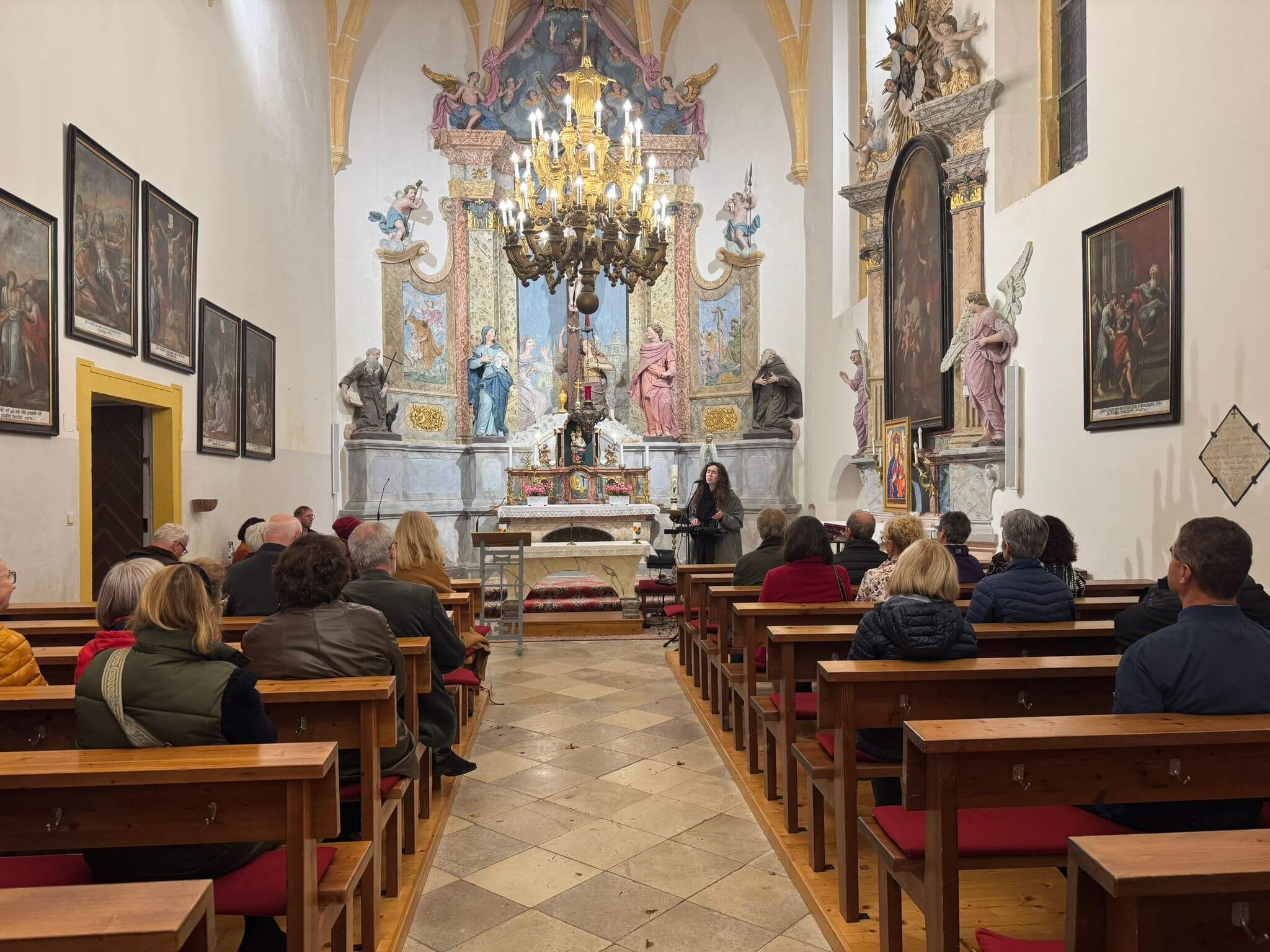 Für die Musikerin war die Stimmung im Kloster besonders prägend: „Als wir angekommen sind, habe ich sofort gespürt, dass das eine besondere Energie ist. Die Stimmung macht viel aus, wie ich die Lieder interpretiere. Und die Zweisprachigkeit hier – das ist mir in meiner Musik auch sehr wichtig.“