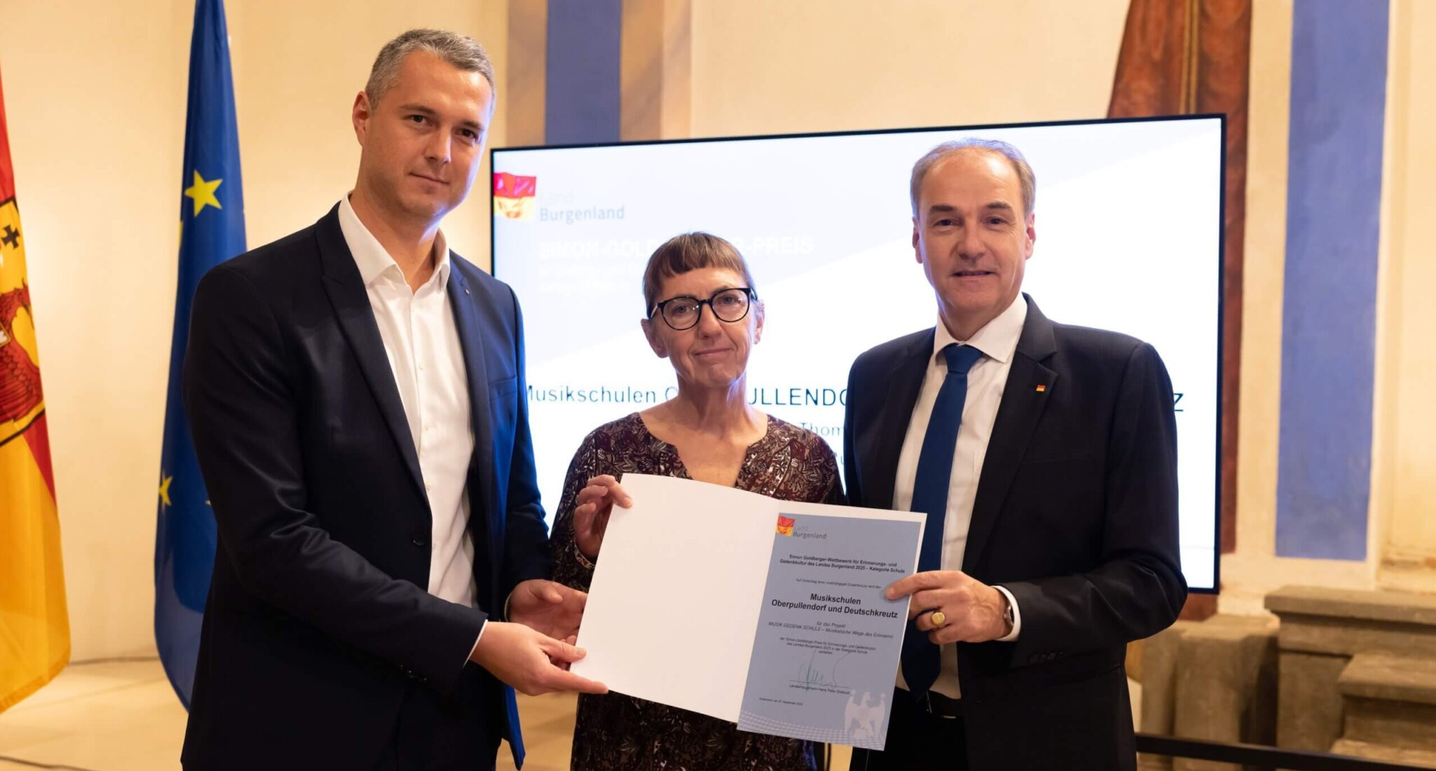 In der Kategorie Schule ging die Auszeichnung 2025 an die Musikschulen Oberpullendorf und Deutschkreutz für ihr gemeinsames Projekt „Musikgedenk-Schule – musikalische Wege des Erinnerns“. Unter der Leitung von Ruth Patzelt widmeten sich die Schülerinnen und Schüler über mehrere Jahre der jüdischen Geschichte des Burgenlandes und der Musik jüdischer Komponistinnen und Komponisten.